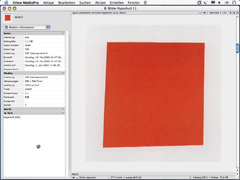 Die technischen Daten eines Scans des "Roten Quadrats" im Bildbearbeitungsprogramm IView.