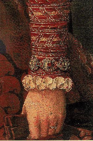 Wenn nun das Denkmal des Adels die Tugend darstellt, dann finden sich diejenigen Tugenden der Reziprozität, also Dankbarkeit, Familiensinn, Solidarität, Loyalität, Verantwortungs- und Verpflichtungsbewusstsein, Treue und Pietät ebenfalls innerhalb der adeligen Mentalität: "Diese Tugenden bestimmen bereits das Leben vor dem Tode und werden nur, indem sie die Toten miteinbeziehen, ins Nachleben verlängert." [34] Aber die an dieser Tapisserie beschäftigten Frauen trugen auch Sorge für ihre eigene Memoria, indem sie ihre Identität enthüllten und gleichzeitig damit bekräftigten. Voll Selbstbewusstsein nennt sich die Urheberin des Gedächtniswerkes mit ihren Helferinnen beim Namen, erläutert ihrer aller Stand und Herkommen: HAB.ICH.CATHARINA.FRAW.VON VOLCKENSTORF.EIN.GEBORNE.VON.DEM.HOCH.VND.WOLGEBORNEN.GESCHLECHT.DER: HERRN.VON.LIECHTENSTEIN.VND.NICOLSPVRG.WITFRAW.DIESE.ARBEIT.MIT HILF.MEINER.LIEBEN.TÖCHTER...MIT.AUGNEN.HENDEN.GEMACHT. Dieses mit den Händen am eigenen Gedenken arbeiten, finden wir auch innerhalb der Frauentestamente mehrfach erwähnt, wenn es um den Nachlass, das Gedächtnis an die eigene, bald verstorbene Person geht: "verschaff ich meiner lieben gräfin von althamb mein seiten gnäten döpich vnnd den fürhanng mit gelben taffet gefuedert, denn mein liebste frau muetter selbst gemacht hat." [35]