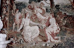 'Tugend ziert den Adel' wirkten Katharina von Liechtenstein und ihre Töchter Maria Elisabeth, Anna Maria, Susanna Katharina, Maria Maximiliana und ihre Nichte Anna Elisabeth von Zinzendorf, eine Tochter Judith von Liechtenstein, einer Schwester Katharinas von Volkensdorf, in diese Tapisserie. Der 'Tischteppich' (diese Bezeichnung ist umstritten) stellt eine heraldische Ahnentafel dar, die sich in vier Hauptäste teilt, welche die Mütter und Väter und die weiteren Vorfahren des Ehepaares Liechtenstein-Volkensdorf repräsentieren.