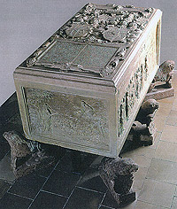 Mentale Formen der Repräsentation werden in den 'Häusern des Todes und des Lebens' (= Grabdenkmal) nach und nach aufgebaut; [13] nun gehen diese nicht von einem einzigen männlichen Vorfahren aus, sondern auch von den Frauen. Dadurch erscheint die 'Ordnung der Verwandtschaft' als durch die Heirat veränderter, sozusagen aufgeweichter, Komplex. Was sich dann als gesellschaftlich durchsetzbarer erweist: "So sind zweifellos die Änderungen in der Verwandtschaftsdarstellung auf den Adelsgräbern...zu verstehen, wo die Darstellung der Geschlechterzugehörigkeit schließlich mit derjenigen der durch die Ehe vollzogenen Einordnung innerhalb des Adelsgefüges einen Kompromiß eingehen muß." [14] Wenn man Gedächtnisgrabdenkmäler als Orte der Reproduktion von Macht interpretiert, dann können Geschlechter ihre äußere Homogenität und ihre innere Solidarität betonen. [15] Damit werden sie zu aktiven und Kräfte mobilisierenden sozialen Orten der Gesellschaft. Die Räume, welche diese Denk-Mäler enthalten, können so zu symbolträchtigen Zeichenträgern werden.
