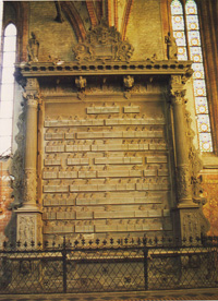 Von besonderer Aussagekraft ist das Grabmonument, das Ulrich zu Ehren von Borwin II. im Chor des Güstrower Domes errichten ließ. Wenn man den Angaben des Humanisten Nikolaus Marschalk Glauben schenken darf, so befindet sich das Grab Borwins II. tatsächlich in der Stiftskirche, [15] auch wenn die meisten Vorfahren der Obotritendynastie in der Klosterkirche in Doberan begraben wurden. Mit dem prächtigen Kenotaph, den Ulrich für seinen Vorgänger in der Mitte des Chores errichten ließ, war der Stifter der Kollegiatskirche jedoch nun auch symbolisch präsent.