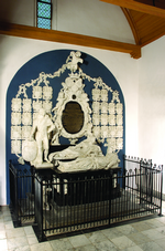 Grabmal der niederländischen Adeligen Anna von Ewsum und ihren beiden Ehegatten, die aus der ostfriesischen Adelsfamilie zu Inn-und Knyphausen auf Lütetsburg stammten, in der Kirche in Midwolde bei Groningen (Niederlande). Das Grabmal aus schwarzem und weißem Marmor wurde von einem der bekanntesten niederländischen Bildhauer der Zeit, Rombould Verhulst, 1669 geschaffen.