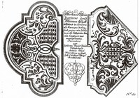Diese Stichvorlage stammt aus einem Konvolut von rund 90 Blättern, die ein Osnabrücker Adliger im 18. Jahrhundert ankaufte, eigenhändig zusammen nähte, um daraus Ideen für die Gestaltung seiner Gestaltung zu schöpfen oder einfach auch nur "abzukupfern".