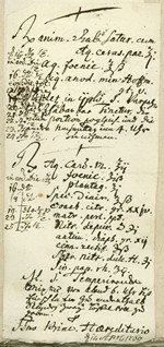 Die medizinische Behandlung, die ihre Enkelinnen im Anschluss an ihre Inokulation erhielten, wurde von der Markgräfin genauestens protokolliert. Diese Aufzeichnungen verweisen auf ein besonderes Merkmal der Überlieferung medizinischer Dokumente am Hof von Baden-Durlach: Rezepte und medizinische Berichte, nicht nur sie selbst, sondern auch ihre Söhne betreffend wurden von der Markgräfin gewissenhaft gesammelt und zum Teil eigenhändig niedergeschrieben bzw. verfasst. [24] Während Karoline Luise selbst verhältnismäßig spät, nämlich im Alter von 8 Jahren, erstmalig mit einem Arzt in Kontakt kam, spiegelt sich in den für ihre eigenen Kinder überkommenen Quellen der fortschreitende Prozess der Medikalisierung. Für die drei Söhne der Markgräfin sind knapp 1.300 Rezepte überliefert, von denen der überwiegende Teil in ihrer Kindheit bzw. Jugend ausgestellt wurde. Hinzu kommen verschiedene ärztliche Berichte über die gesundheitliche Konstitution ihrer Söhne sowie spätere Rezepte für ihre Enkelinnen. Mit circa 700 an der Zahl stechen die Rezepte für den Erbprinzen Karl Ludwig zahlenmäßig heraus, dessen Krankheitsgeschichte und ihrer Dokumentation man naheliegender Weise größere Bedeutung beigemessen hat. Verschrieben wurden in diesen Rezepten überwiegend Mittel gegen Beschwerden, die als typisch für Kinder gelten, wie Blähungen, Verstopfungen, Magenbeschwerden und Verdauungsprobleme im Allgemeinen; außerdem Medikamente gegen Erkältungen (Husten, Halsschmerzen und Fieber), stärkende Essenzen und Mittel gegen Krämpfe bzw. solche, die der Blutreinigung dienen sollten. Vorgeschrieben wurde meist eine täglich mehrmalige Anwendung der Medikamente sowie eine genaue Beobachtung der Reaktion, die oft von der Markgräfin selbst schriftlich auf dem Rezept festgehalten wurde und eine erneute Anwendung desselben Heilmittels erleichtern sollte. Gelegentlich verlangten die Arzneien überdies eine nächtliche Verabreichung: Die Krankheit der fürstlichen Kinder erforderte nicht nur einen erheblichen Aufwand an Bedienung, sondern auch eine ständige und damit empirischen Grundsätzen entsprechende Beobachtung, beides Faktoren, die – da sie Zeit und Wohlstand voraussetzten – auf die spezifischen Bedingungen verweisen, unter denen Kindheit bei Hof gelebt wurde. Neben der medikamentösen Versorgung und Ernährung ihrer Kinder richtete sich Karoline Luises Augenmerk – ganz den Forderungen der eingangs zitierten Instruktion entsprechend – auch auf deren körperliche Aktivität: "wenn das Wetter gut u. die Kinder gesund sind, dürfen sie tägl. von 1. biß 2., u. den das andere mahl nach ihren Lectionen abends biß 7 Uhr spazieren gehen. Solte es gar heiß seyn dörfen sie auch biß ½ 8. ausen bleiben länger aber nicht". [25]