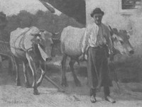 Matija Jama, Bauer mit den Ochsen, 1899, Öl auf Leinwand, Maße unbekannt, Privatbesitz