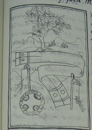 Die bildliche Darstellung lässt sich durch Zweidimensionalität, das Fehlen einer Zentralperspektive und eine abstrahierende, symbolische Darstellung charakterisieren. Einige Symbole erschließen sich direkt wie zum Beispiel die Fußabdrücke, die sowohl für den Weg stehen, als auch die Richtungen anzeigen, in denen die Ereignisse stattfinden. [15] Das gemalte Dokument steht dabei nicht für sich allein. Um es zum sprechen zu bringen, bedarf es der Interpreten, der tlamatinime, wörtlich, diejenigen, die etwas wissen. Dabei können weder bildschriftliche Vorlage noch mündlicher Text für sich allein stehen. Der Sinn erschließt sich erst durch das Zusammenspiel von “schriftlichem“ Bild und “mündlichem“ Text. [16] Diese symbiotische Beziehung von Bild und Text löst sich durch die Einführung der europäischen Schriftlichkeit auf.