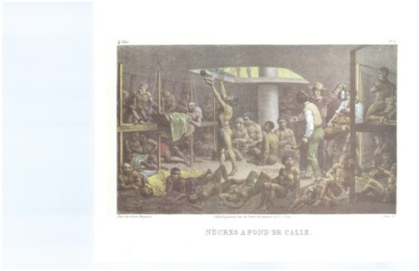 Eine Sub-Serie über symptomatische Orte des Sklavenhandels zeigt das Innere eines Sklavenschiffes, die Anlandung in Amerika, einen Sklavenmarkt (das Bild mit den Graffitis), den Transport eines Sklavenkonvois und die Ankunft `neuer Neger´ auf der Plantage. [55]