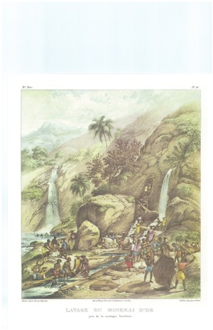 Zwei Lithografien aus der Serie “Paisagem“ (1 Division) geben Abbilder von Villa Rica in Minas Gerais wieder, zum Teil mit Szenen aus dem Bereich des Goldbergbaus in und um Villa Rica. Die beste Darstellung der Goldwäscherei mit Sklaven aber stammt unter dem Titel “Lavage du Minerai d’or près la montagne Itacolumi“ [sic] aus der 3. Division (zur Gliederung der Stiche siehe unten).