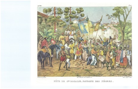 Tänze von Sklaven und Libertos (Batuca), Kampfkünste (Capoeira), Feste und Sitten (Fest der Hl. Rosalie, Begräbnis) brachte Rugendas in einer Sub-Serie vor allem mit Bildern aus São Salvador de Bahia zum Ausdruck.