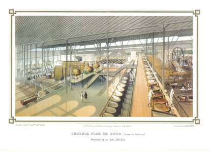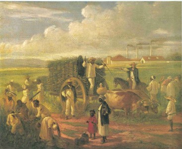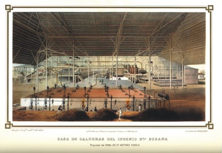 Auf Kuba haben Miahle, Landaluze (für den urbanen Bereich) und vor allem Cantero/Laplante (für den ruralen Bereich) einen ebenso einmaligen geschlossenen Korpus zu Dimensionen und Landschaften der Sklaverei aus der Sicht der Herren geschaffen. [25] Cantero als Mitglied der engeren und sehr begüterten Zuckerelite regte die Bilder an; er steuerte und kontrollierte die Visualisierung und vor allem die Texte. Bei Cantero/Laplante stehen äußere und innere Strukturen, wie auch die historische Erinnerung der Sklavereiarchitektur und -landschaft sowie nicht zuletzt technologische Neuerungen im Mittelpunkt. Auf den Bildern überwiegt die Herrenkultur; Sklaven kommen nur am Rande oder als sehr kleine, nicht individualisierte Figuren vor – man braucht eine Lupe, um arbeitende Sklaven zu sehen. [26] Auch das ist `Massen´- Sklaverei. Diese Art der Visualisierung prägte die Grundlinien der Rezeption auf Kuba. In der offiziellen Kunst, in Kultur und Medien sowie in der Historiografie dominierten Strukturen, Herren und Technologien. [27]