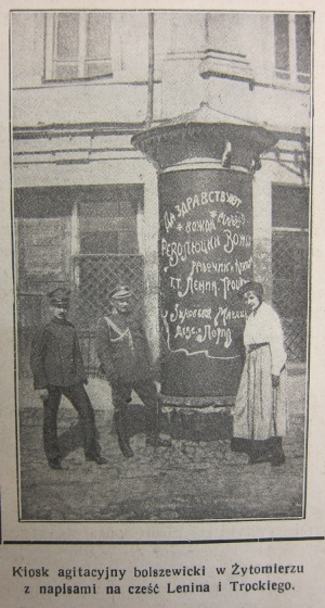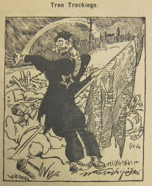 Es war Trockij, den der kulturell vermittelte und von den polnischen Zeitgenossen verstandene Subtext als das jüdische Gesicht der Oktoberrevolution ausgemacht hatte. [36] Die Meinung: "Jude = Bolschewik" sei für die Massen damals überaus klar und verständlich gewesen und habe sich, wie Aleksandra Leinwand feststellt, ohne Mühe für die Propaganda nutzen lassen. [37]
