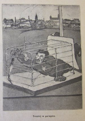 [36] Neben Trockij wurde damals nur noch Lenin abgebildet, letzterer meist mit asiatischen Gesichtszügen. Vgl. Aleksandra Julia Leinwand: Polski plakat propagandowy w okresie wojny polsko-sowieckiej (1919-1920), in: Studia z Dziejów Rosji i Europy Środkowo-Wschodniej 28 (1993), 64.