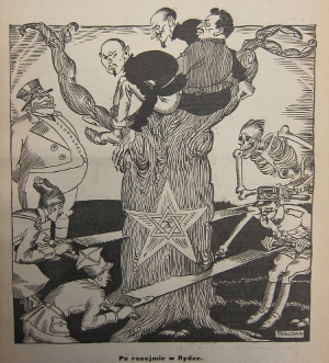 Für andere politische Strömungen stellt sich der Rekurs auf das Konstrukt vom "jüdischen Bolschewismus" sicher differenzierter dar. [51] Aber auch jenseits rechter und klerikaler Strömungen wurde auf das Feindbild zurückgegriffen. Agnieszka Pufelska hat in diesem Zusammenhang auf eine Verteufelung jüdischer Funktionäre im sowjetischen Machtapparat verwiesen, welche auch von den polnischen Sozialisten aufgegriffen worden sei. [52] Und die polnische Bauernpartei Piast eröffnete schon kurz nach der Oktoberrevolution ihren Anhängern: