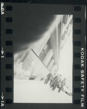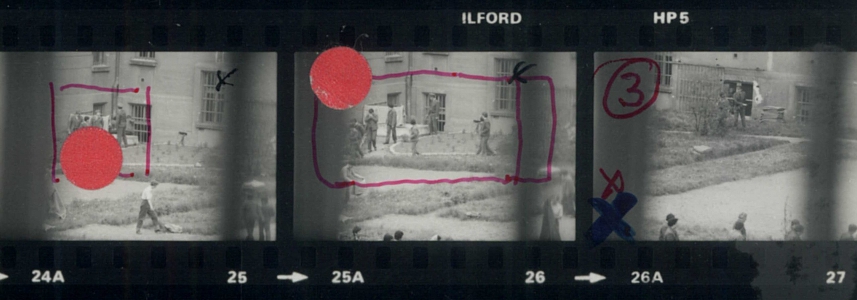 Erst mithilfe der Zeitzeugen-Interviews, wie auch anhand der Sichtung von insgesamt 17.000 Einzelnegativen des Kyncl-Nachlasses, konnte bestätigt werden, dass der Fotograf zwei Reisen nach Opava unternommen hatte. [34] Allein 160 Einzelaufnahmen lassen sich dem Gefängnis Opava zuweisen, so dass theoretisch genügend Material vorhanden gewesen wäre, um daraus dramatische Szenen zu montieren, die sicherlich zum Gefängnisalltag gehörten, aber sich just zu diesem Zeitpunkt nicht real vor den Augen des Fotografen abspielten. Es scheint tatsächlich so, als ob es für die Züchtigung der Gefangenen einen anderen Grund als den Abwurf des Kassibers gegeben habe. Dafür spricht nicht nur die Tatsache, dass sich die Abwurf- und die Prügel-Szene auf Filmen unterschiedlicher Hersteller befinden (Abb. 5 und 6). Dies allein wäre aber noch kein Beweis, da Kyncl mitunter mit kurzen Negativstreifen arbeitete, um im Fall eines Polizeizugriffs nicht das gesamte Material zu verlieren. [35] So kann es durchaus dazu gekommen sein, dass er für eine Aufnahmeserie unterschiedliche Filmstreifen verwendete.