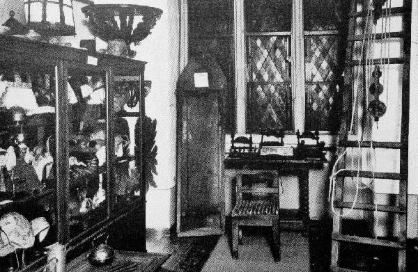 "Folterwerkzeuge aus der Zeit der Hexenprozesse im Heimatmuseum". Blick in den Ausstellungsraum im Hexenbürgermeisterhaus (1936).