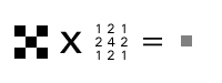 Die Anwendung eines solchen Filters ist denkbar einfach. Jedes Pixel des eingegebenen Bildes wird auf ein Pixel des Ausgabebildes übertragen. Dabei summiert man die Umgebung des Pixels nach Vorgabe der Filterwerte: die direkt benachbarten Farbwerte werden verdoppelt, die diagonal benachbarten einfach hinzugezählt, der Farbwert des Zentrums vervierfacht und danach der Durchschnitt gebildet.