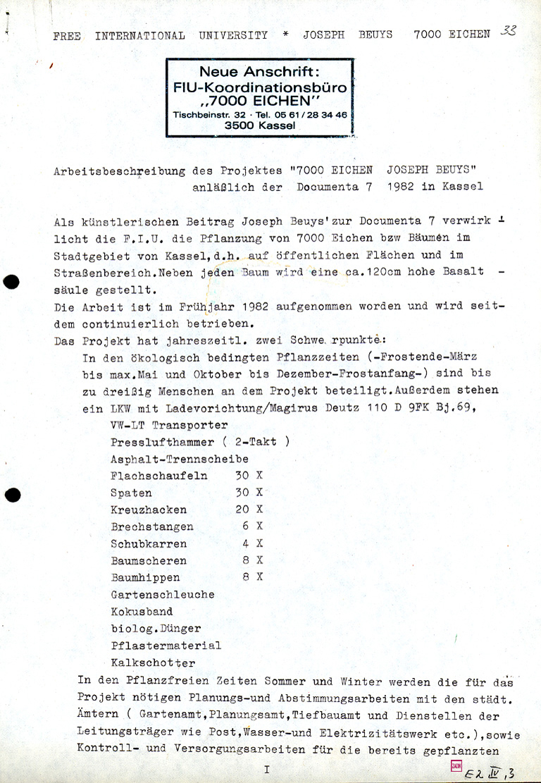 Joseph Beuys, Aktion »7000 Eichen«, Arbeitsbeschreibung des Projekts.
