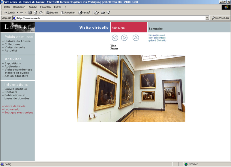 "Visite virtuelle" auf der website des Louvre, screenshot, 15.08.2002