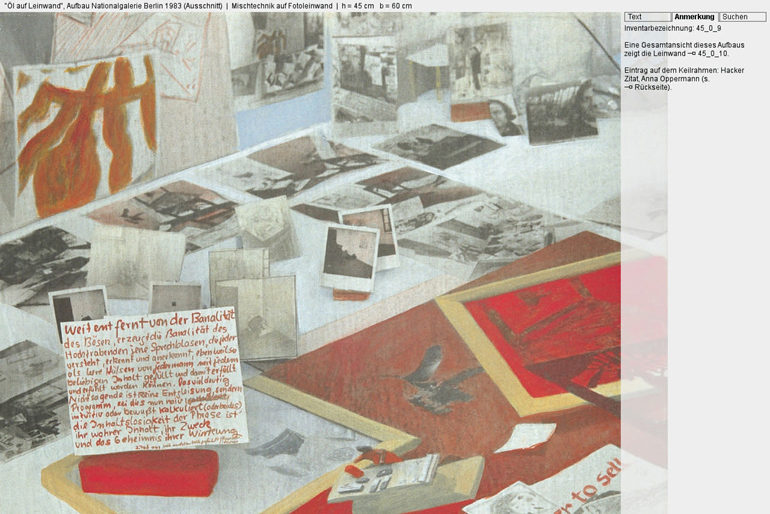 Bildschirmdarstellung eines Details des Ensembles "Öl auf Leinwand" von Anna Oppermann, Kunsthalle Hamburg.