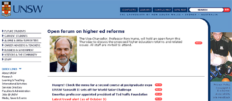 Website of the 'University of Sydney' |