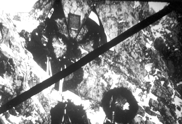 Schlageter-Denkmal auf der Zugspitze, 1933: Standbild aus der Deulig-Tonwoche, Nr. 74, 1933 (aus Copyright-Gründen mit schwarzem Querbalken)