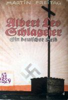 [9] Zwar wurde schon um 1923/24 einschlägiges Werbematerial vermutlich von der NSDAP produziert, nämlich kleine Aufkleber mit Aufdrucken "Rache für Schlageter!", "Schlageter war Nationalsozialist", "Denkt an Albert Leo Schlageter" und "Werde Du auch ein Schlageter!"