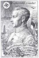 Als müsse die insgesamt eher zurückhaltende Position der NSDAP vor 1933 kompensiert werden, wurde nun vehement Schlageters exzeptionelle Wichtigkeit reklamiert: "Die Namen verwehen und die Leiber vermodern, aber der Geist des Helden geht ein in die Ewigkeit des Volkes, um das mahnende Gewissen der Gegenwart und die anspornende Verheißung für die Zukunft zu bilden. Wenn der Opfertod einer Vielzahl von Helden ihr Sinnbild findet in einem, der für alle stirbt, so wirken Tat und Tod dieses Einen fort als volkbewahrende und volkerzeugende Kraft in die fernsten Jahrhunderte hinein. Von dieser Art und von diesem Rang ist Albert Leo Schlageter, der am 26. Mai in der Golzheimer Heide bei Düsseldorf von den Franzosen am Pfahl erschossen wurde. Schlageter ist zu einem Symbol des Glaubens geworden, ohne den es keine deutsche Zukunft mehr gibt."