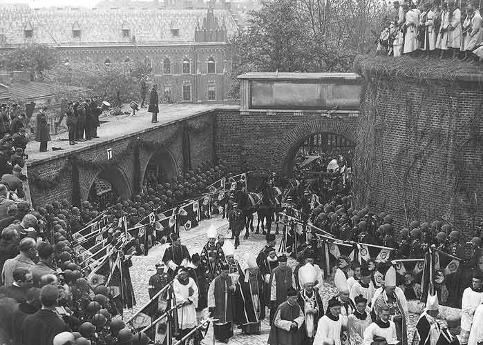 Die Piłsudski-Begräbnisfeierlichkeiten in Krakau: Der Trauzug vor der Wawelkathedrale (18.V.1935). Quelle: Bildarchiv des Zentralen Heeresarchivs (CAW) Warschau.