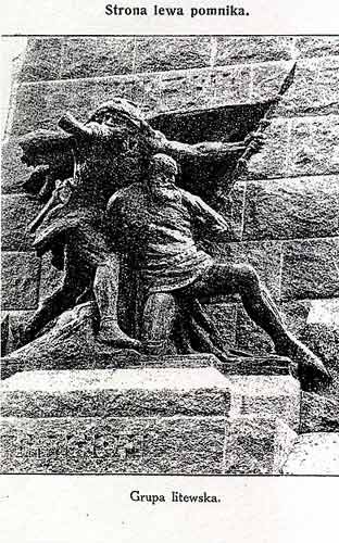 Grunwalddenkmal in Krakau. Aufnahme von 1910. Linke Seite: litauische Gruppe. Quelle: Wieniec Grunwaldzki z 1910 roku. Kraków 1910