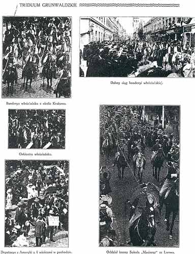Umzug in Krakau anlässlich der Grunwaldfeier im Juli 1910. Quelle: Wieniec Grunwaldzki z 1910 roku. Kraków 1910