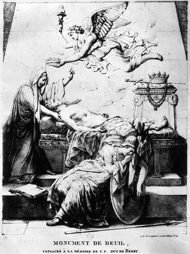 „Monument de Deuil, consacré à la mémoire de c.f. duc de Berry.“, Lithographie, 1820 [Bibliothèque nationale de France].