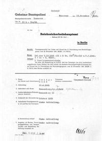 Der Devisenstelle war es durch ihr rigides Vorgehen gelungen, die gesamte Familie Seligmann innerhalb eines Jahres aus Ronnenberg zu vertreiben und sich eines großen Teils ihres Vermögens zu bemächtigen. Mitte Mai 1939 hatten die letzten Seligmanns Ronnenberg verlassen, der Ort war nun 'judenfrei'. [12] Heinz, Werner und Günther, die Söhne von Siegmund und Franz Seligmann, waren schon 1936 und 1937 nach Brasilien bzw. Uruguay gegangen. Etwa ein Jahr später folgten ihnen ihre Eltern. Bild 8: Gestapo vom 13.11.1942, Vermögensverfall an das Reich (S. Seligmann)