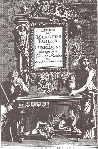 Vorlage für Spiegelrahmen und Tische, Jean Le Pautre, Livre de Miroirs, Tables et Gueridons, Nachdruck um 1700. Museumsdorf Cloppenburg.