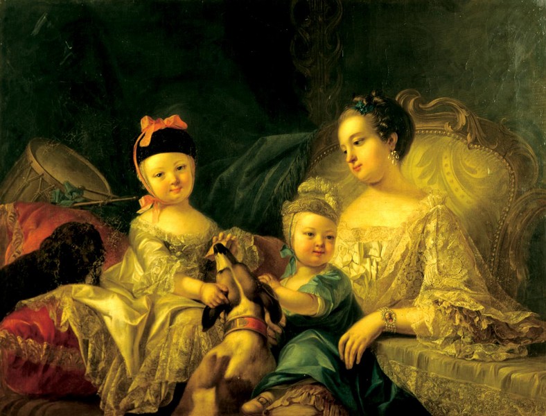 Fenster schließenKaroline Luise, Markgräfin von Baden (1723-1783), mit ihren beiden ältesten Söhnen. Öl auf Leinwand, 102,5x136 cm, Joseph Melling, Karlsruhe 1757, Badisches Landesmuseum Karlsruhe, Dauerleihgabe der Musées de France, in: Catalogue des peintures M.N.R. hg. von Claude Lesné und Anne Roquebert, Paris 2004.