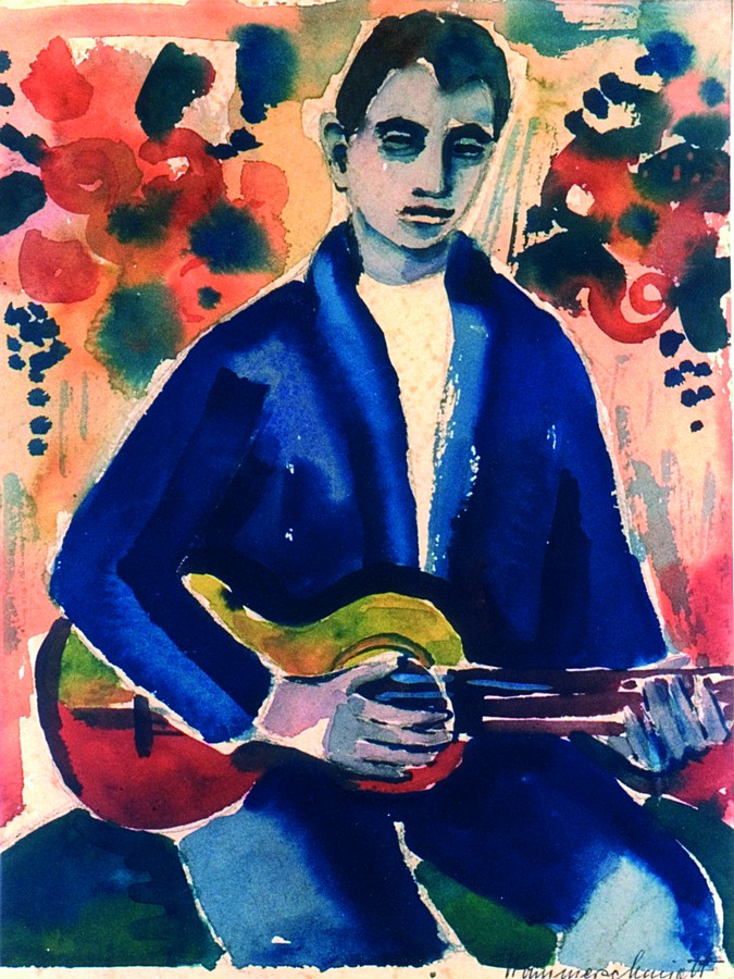 Fenster schließenKonstantin (Kotscho) Garnev, Knabe mit Gitarre, späte 1950er bis frühe 1960er-Jahre, Aquarell auf Papier, 29 x 21 cm, Privatbesitz in Sofia