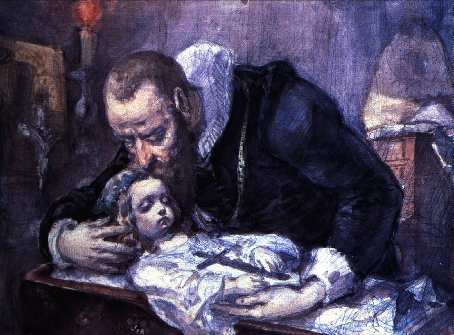 Jan Matejko, Skizze zu 'Jan Kochanowski mit seiner Tochter Ursula’, 1862, Aquarell, 24 x 32 cm, Privateigentum