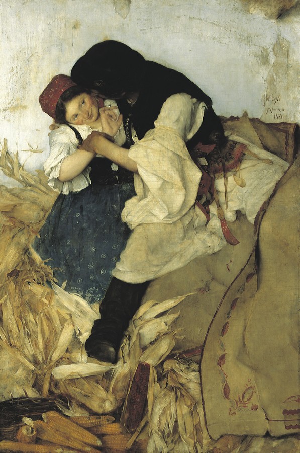 Simon Hollósy, Maisschälen, 1885, Öl auf Leinwand, 151 x 100,5 cm, Ungarische Nationalgalerie, Budapest, Inv. Nr. 4868