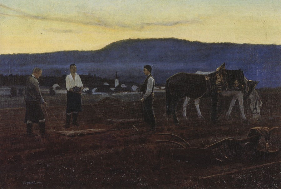 Matija Jama, Ackermänner, 1900, Öl auf Leinwand, 64 x 97 cm, Regierungsbesitz