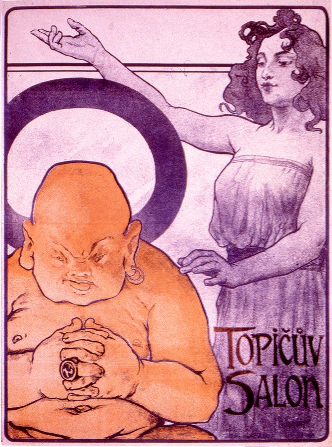 Arnošt Hofbauer, Plakat der 1. Ausstellung des Mánes-Vereins, 1897, Zweifarbige Lithographie (bianco), 111 x 82 cm, Foto: Fotosammlung des Autors