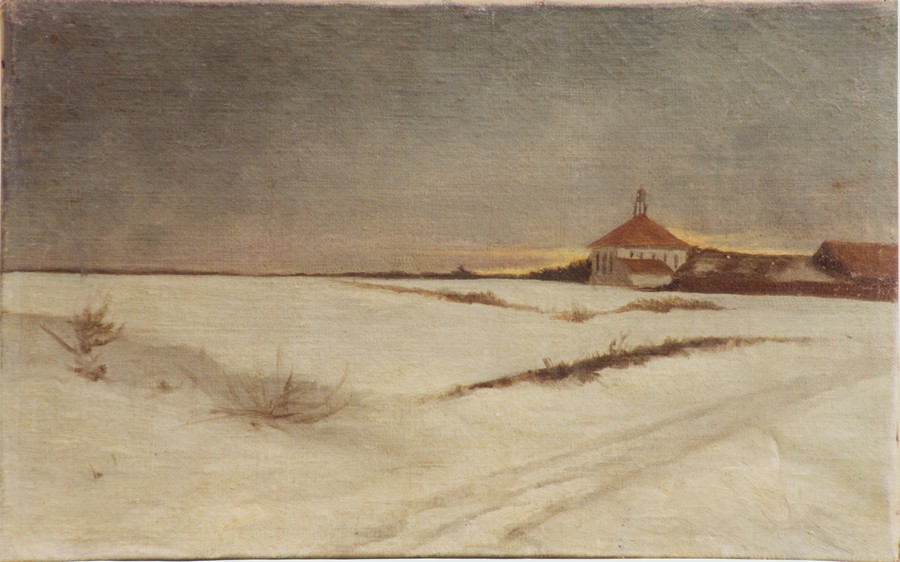 Tadeusz Dowgird, Winterlandschaft, Jahr unbekannt, Öl auf Leinwand, 28 x 45 cm, Litauisches Museum für Bildende Künste, Vilnius, Inv. Nr. T 1729