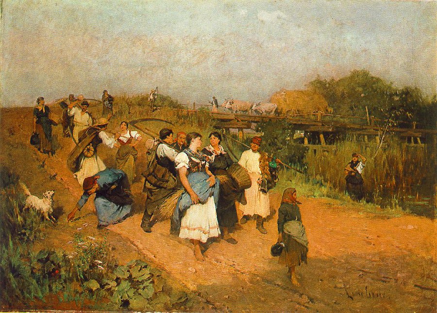 Lajos Deák Ébner: Heimkehrende Schnitter (Hazatérő aratók), 1881, Öl auf Leinwand, 99 x 87 cm, Ungarische Nationalgalerie, Inv.Nr. 1658