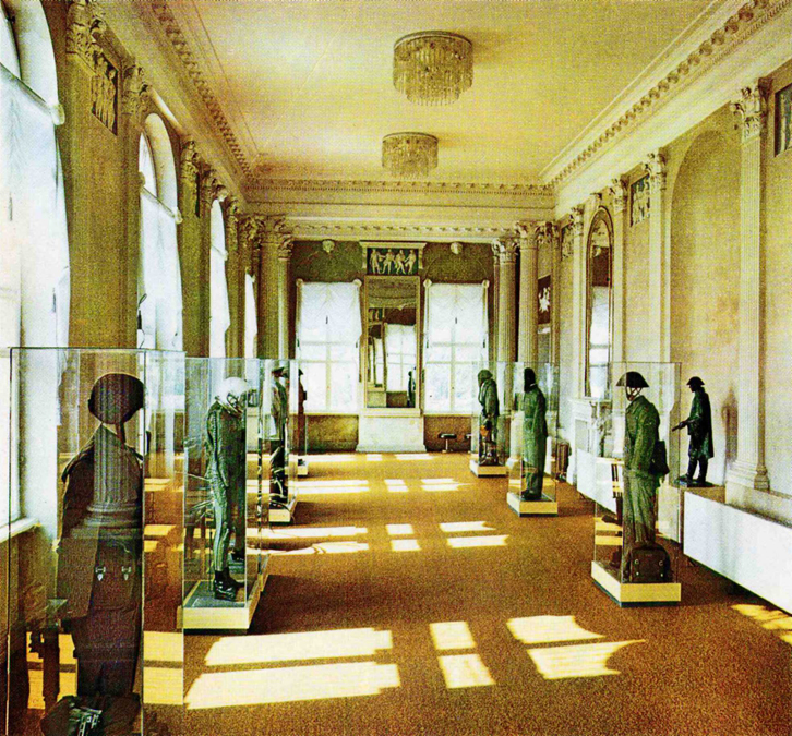 Abb. 10: Marmorpalais, Großer Saal mit Ausstellung des Armeemuseums, um 1985, SPSG, Archiv Schloss Cecilienhof