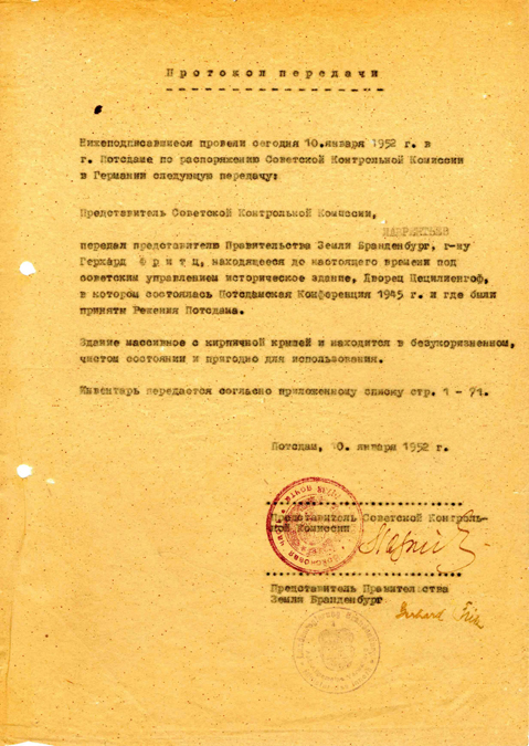 Abb. 3,1: Übergabe-Protokoll vom 10 Januar 1952, russisch, SPSG