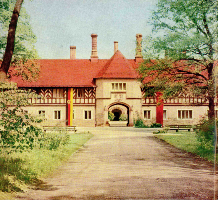 Abb. 5: Schloss Cecilenhof. Haupteinfahrt zum großen Hof, um 1964, SPSG, Archiv Schloss Cecilienhof