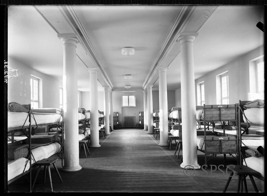 Abb. 4: Potsdam, Neues Palais. Erdgeschoss des kaiserlichen Marstalls nach dem Umbau zum Schlafsaal für die Reichsführerschule des Arbeitsdienstes. Aufnahme vom 4. Dezember 1933