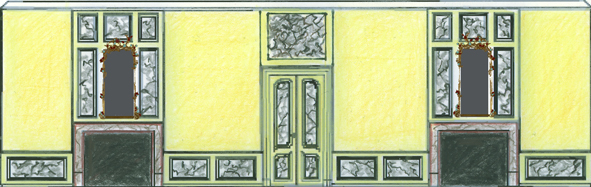 Farbskizze 1: R.01 Gartensaal, Westwand