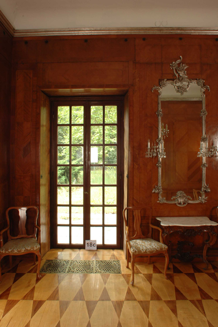 Abb. 3 Zederngalerie mit originalen Konsoltischen und Stühlen aus dem 20. Jahrhundert, Foto: 2005 SPSG ©