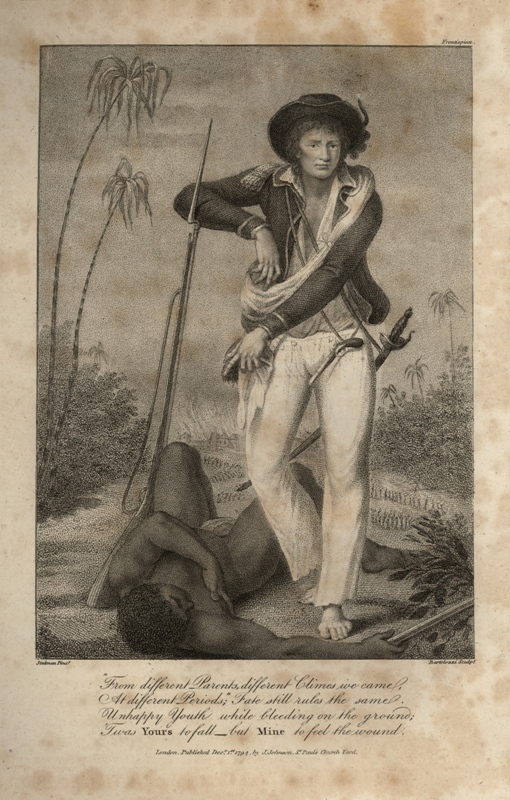 Abb. 3: John Gabriel Stedman: Narrative of a five years’ expedition, against the Revolted Negroes of Surinam, in Guiana, on the Wild Coast of South America; from the year 1772, to 1777, elucidating the History of that Country, and describing its Productions. Viz. Quadrupedes, Birds, Fishes, Reptiles, Trees, Shrubs, Fruits, & Roots; with an account of the Indians of Guiana, & Negroes of Guinea. By Captn. J. G. Stedman, 2 Vols., London 1806 (second edition, corrected).