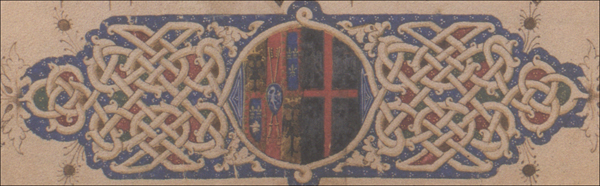 1a Die Komposition "Tant fort me tarde la venue" von Philippe Basiron (um 1450 bis vor 1491) mit einem Wappen am Fußende des foglio, in dem die Familienwappen der Este und der Gonzaga zusammengeführt werden (1b)