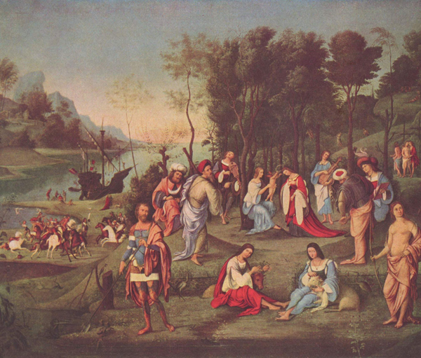 Abb. 3: Lorenzo Costa: "Krönung einer Dame" oder "Isabella, von Amor gekrönt" (1504-1506), Paris, Louvre. Übernommen aus: http://br.wikipedia.org/wiki/Skeudenn:Lorenzo_Costa_003.jpg